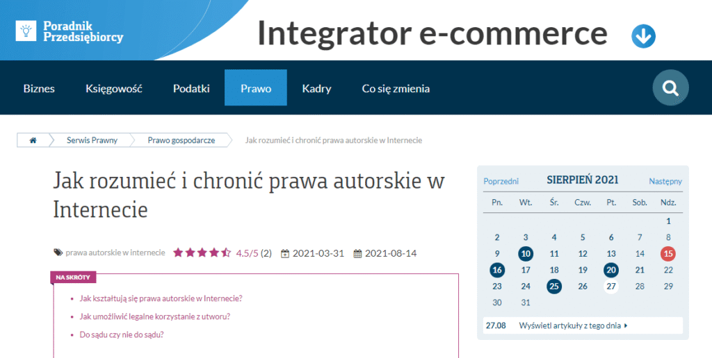 Jak rozumieć i chronić prawa autorskie w Internecie? Na te pytania odpowiadamy w artykule przygotowanym dla naszego partnerskiego serwisu – poradnikprzedsiebiorcy.pl – zapraszamy do lektur...