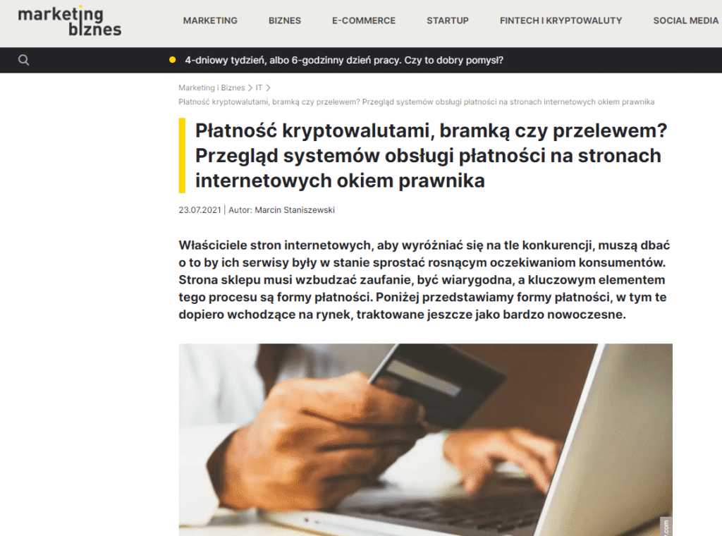 Kryptowaluty czy przelewy? Czym płacić na stronach internetowych? Zapraszamy do krótkiego poradnika przygotowanego przez Radcę Prawnego Marcina Staniszewskiego dla naszego partnera – portalu mar...