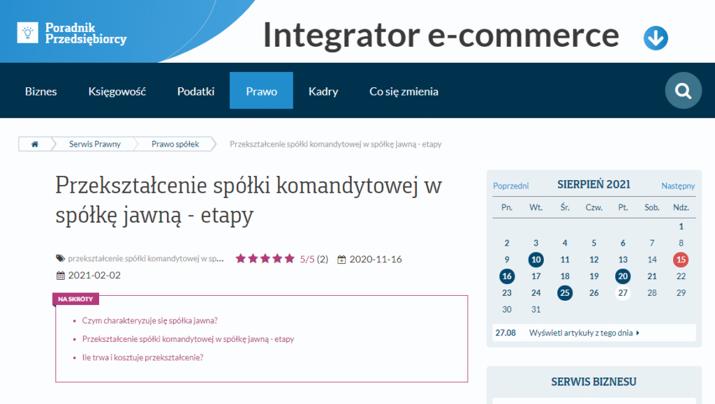 Jak przebiega przekształcenie spółki komandytowej w spółkę jawną? Zapraszamy do lektury poradnika przygotowanego przez Radcę Prawnego Marcina Staniszewskiego dla czytelników portalu poradnikprzedsiebi...