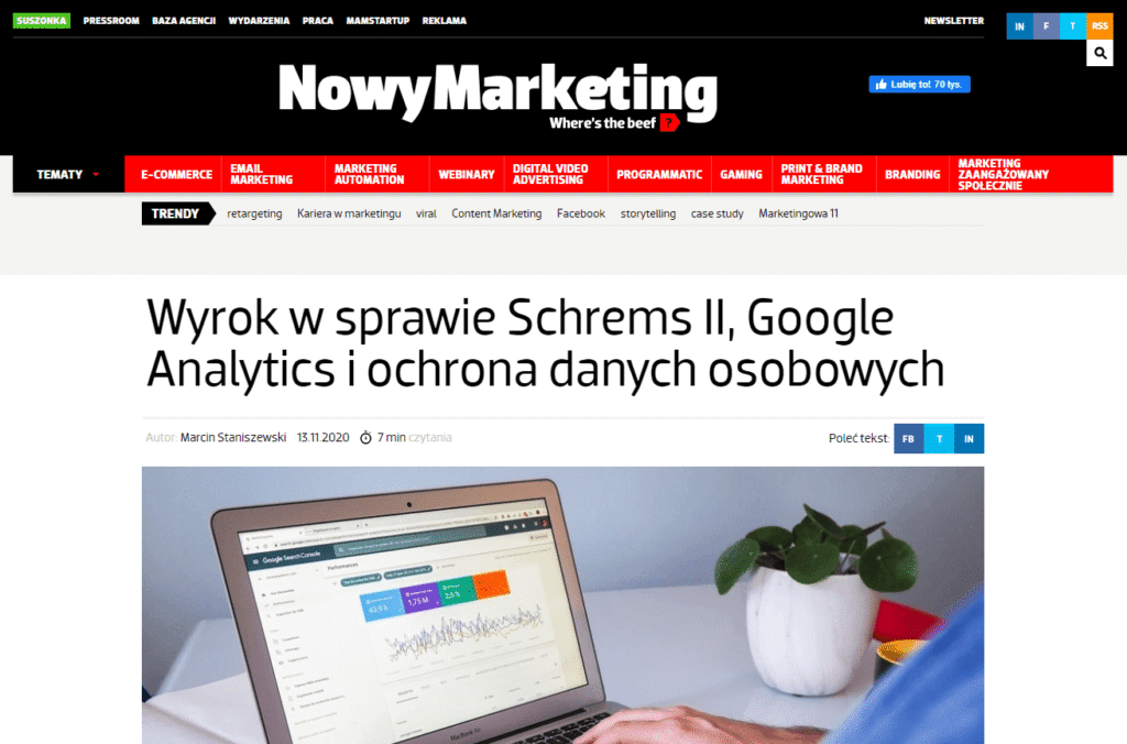 Przełomowy wyrok w sprawie Schrems II i kilka słów o Google Analytics oraz ochronie danych osobowych, czyli kolejny artykuł przygotowany przed Radcę Prawnego Marcina Staniszewskiego dla zaprzyjażnione...