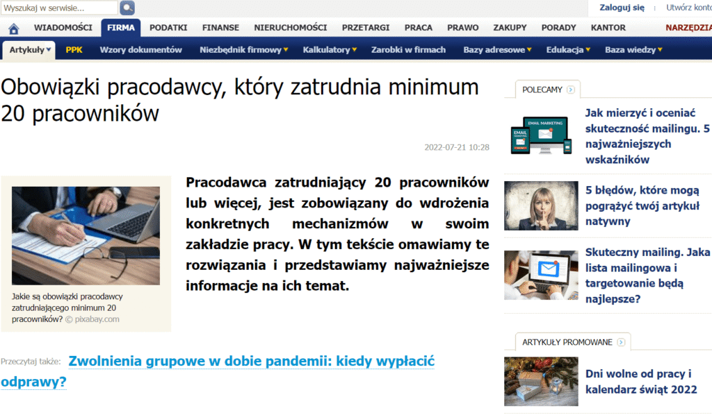 Obowiązki pracodawcy, który zatrudnia minimum 20 pracowników
