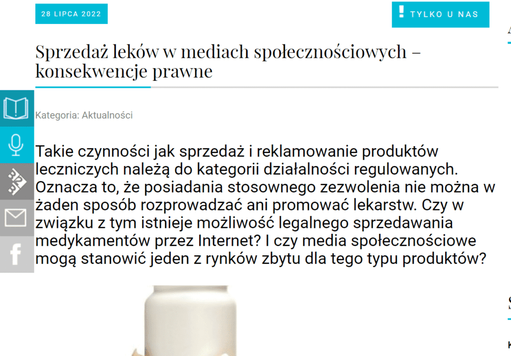 Sprzedaż leków w mediach społecznościowych - konsekwencje prawne